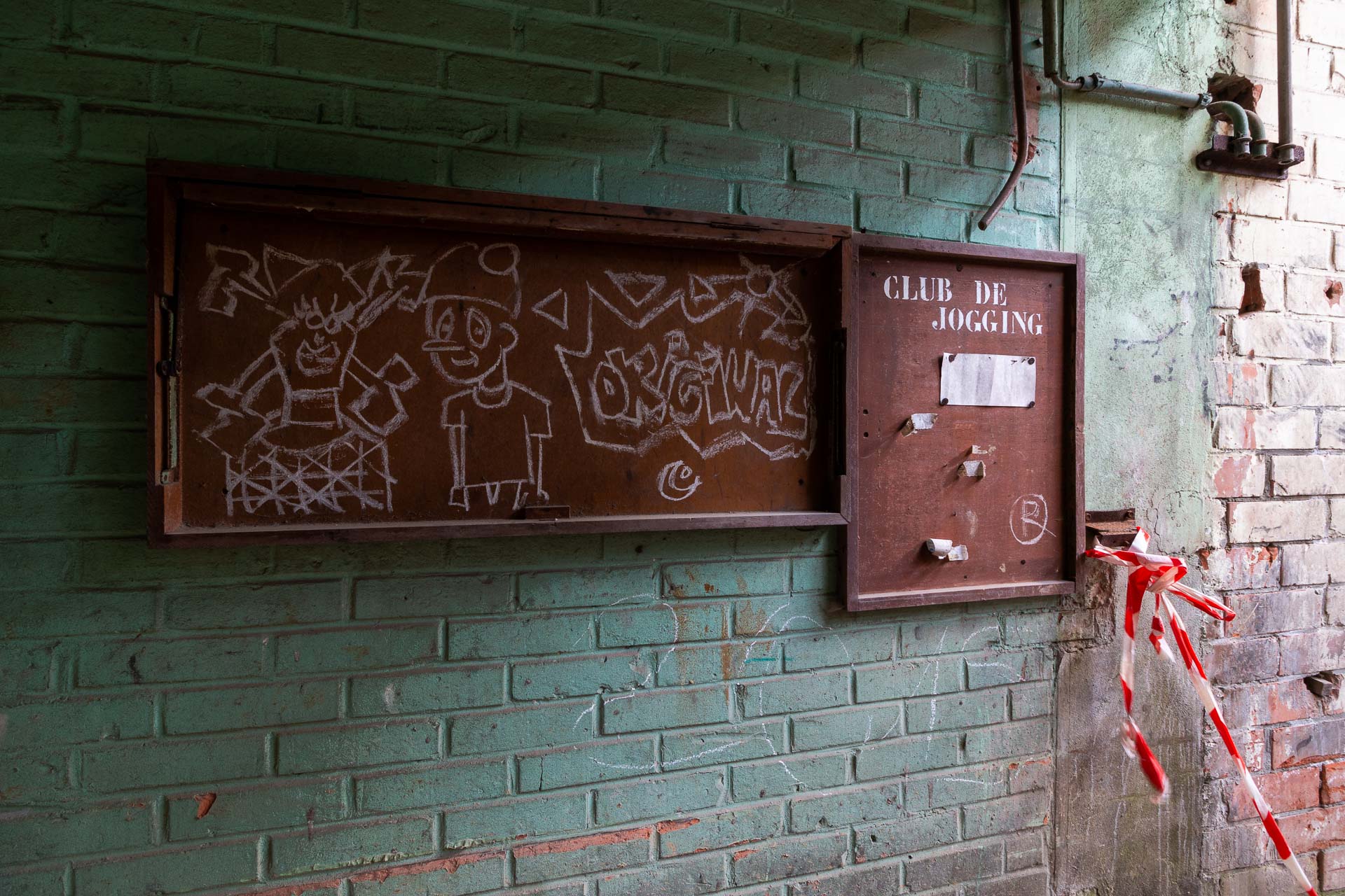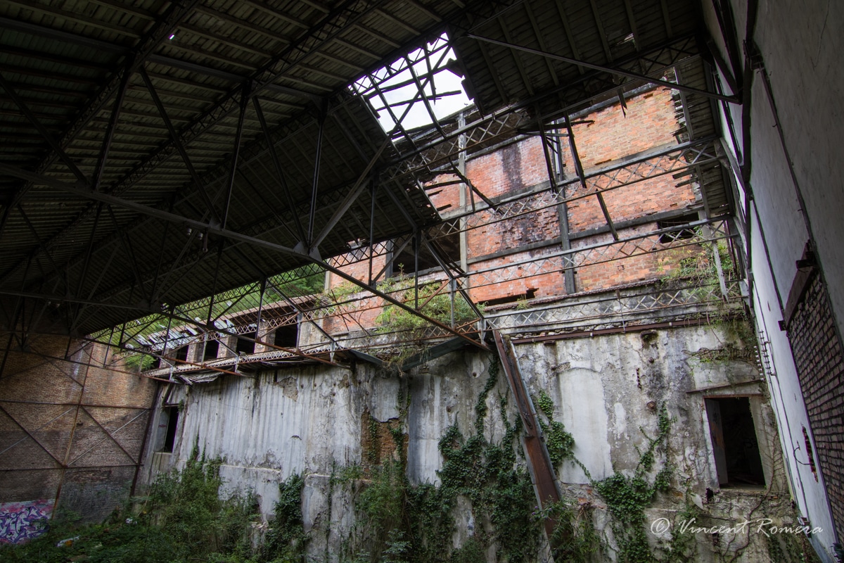Comme je le disais juste en introduction, tout se casse la gueule dans ce lavoir à charbon et il faut peser chacun de ses pas, les dalles en béton et en plaques de fer ont pris vraiment très très cher les dégradations volontaires (on vient pour tout casser, où on fout juste le feu tout en mettant en danger la vie des pompiers…), le temps et le mauvais temps. A certains endroits, le béton est si fin qu’on le sent vibrer à chacun de nos pas, les plaques de fer qui constituent une partie du plancher sont complètement rouillées, dessoudées, déformées et même percées à certains endroits : le temps a fait son oeuvre. Il faut aussi faire attention au dessus de soit : ne pas prendre une tôle ou autre chose sur le crâne, même si les chutes ont été assez rares, elles ne sont pas inexistantes pour autant.